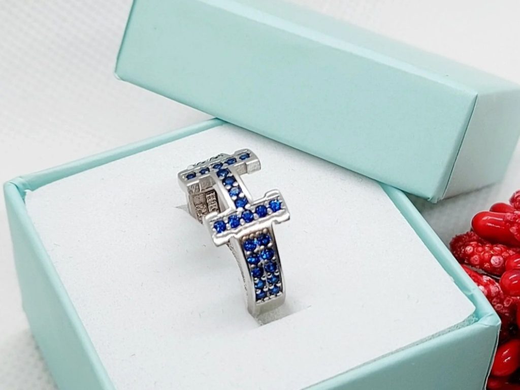 Veoma moderan zenski prsten sa sitnim cirkonima u plavoj boji, izradjen od pravog srebra finoce.925.
